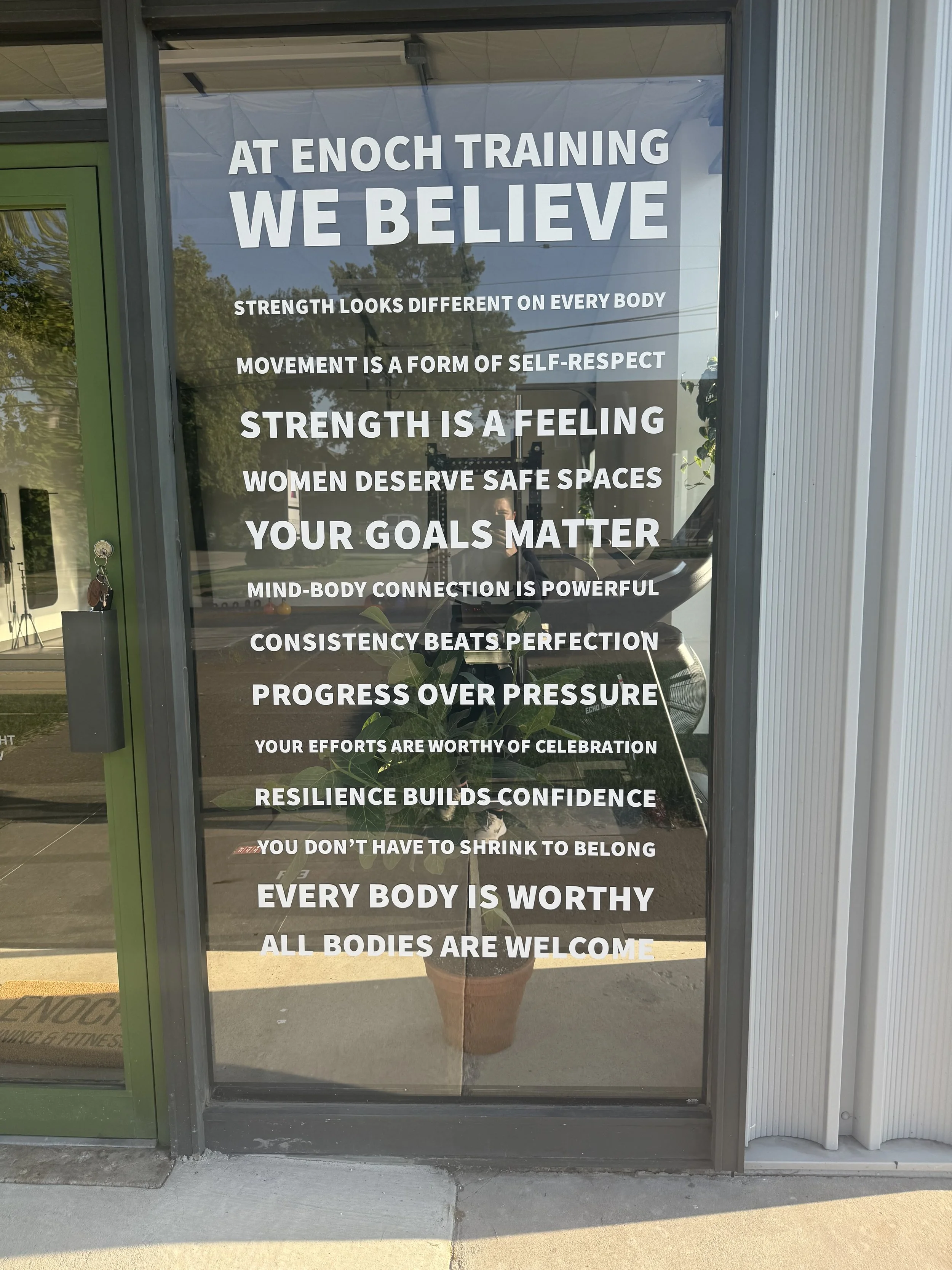 At Enoch, we train strength differently—anchored in focus, purpose, and measurable progress you can feel. In our private 1‑to‑1 studio, every woman is seen, heard, and coached with intention.